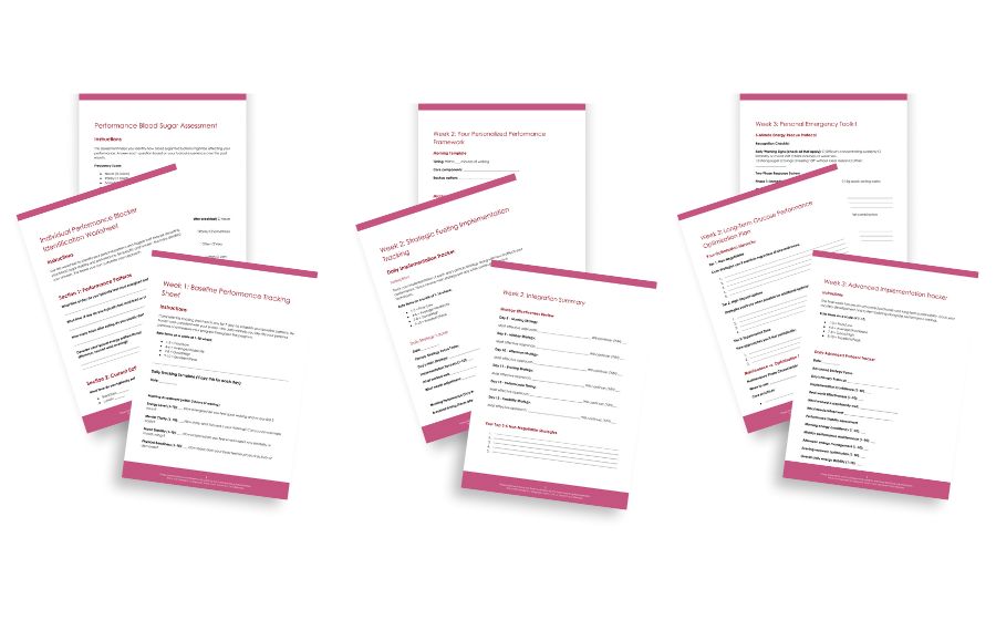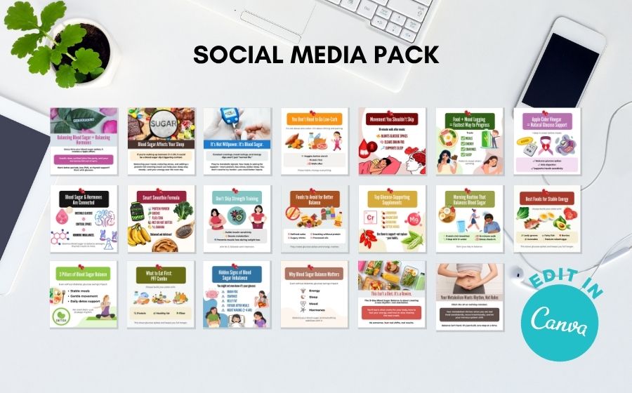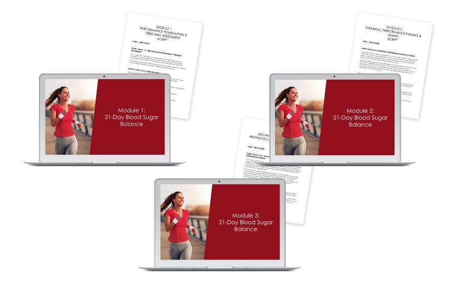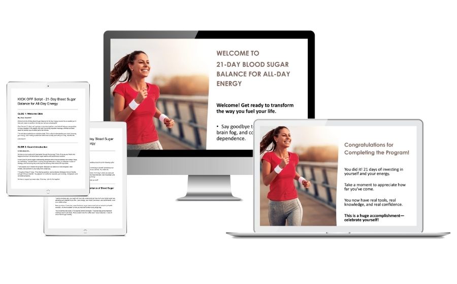 21 Days of Guided Transformation. Each module includes detailed educational content and daily implementation guides that take clients from blood sugar chaos to consistent all-day energy!