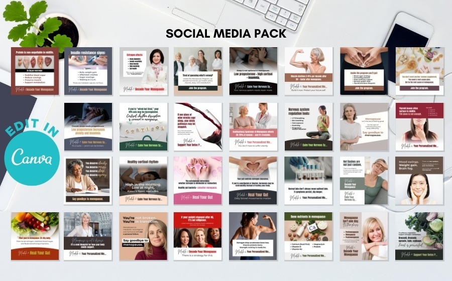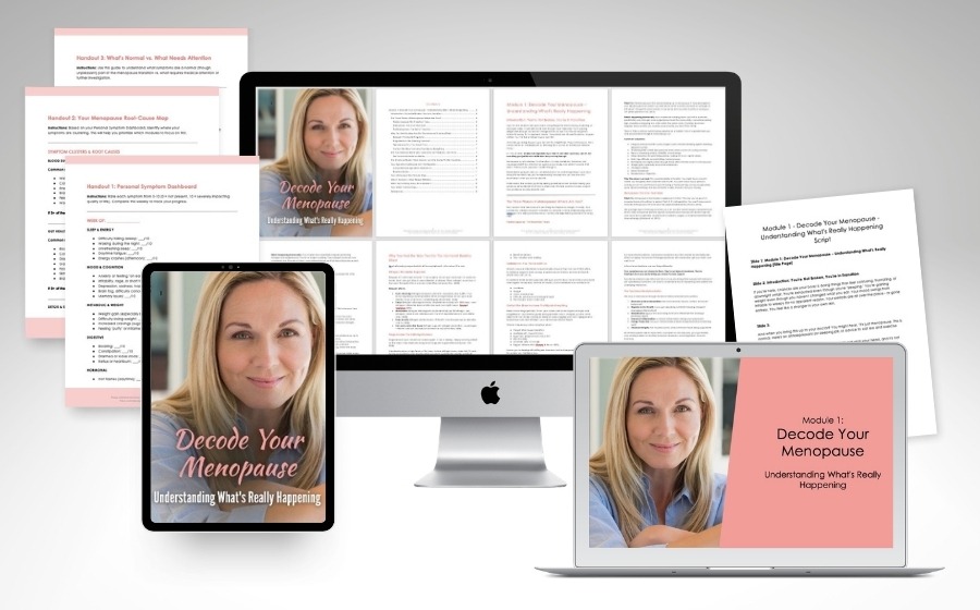A root-cause, functional medicine approach to menopause covers a lot of ground: hormonal physiology, adrenal and thyroid health, gut-hormone connections, nutrition, sleep architecture, stress response, and more. Building a 3-month program that addresses all of it accurately and cohesively is a significant research and writing investment. It takes months and costs thousands.