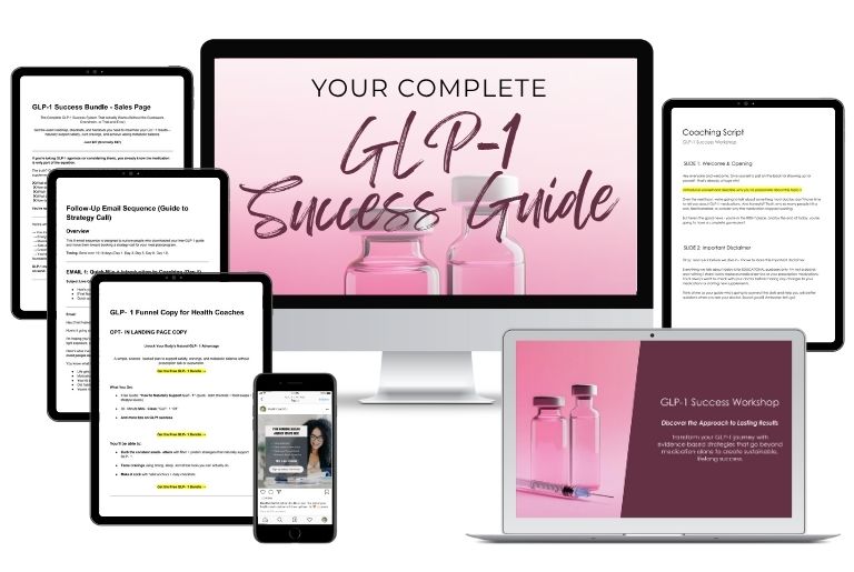 GLP-I Practice Growth Toolkit™ COMPLETE GUIDE, HANDOUTS & MARKETING KIT A Ready-to-Launch GLP-1 Support Program Package BUY NOW FOR $297 CLICK HERE FOR PAYMENT PLAN Hey Health Coach… This done-for-you GLP-1 program has everything you need to serve the fastest-growing client demographic in wellness, people using GLP-1 medications. I know your struggle to create comprehensive, science-backed content for emerging …
